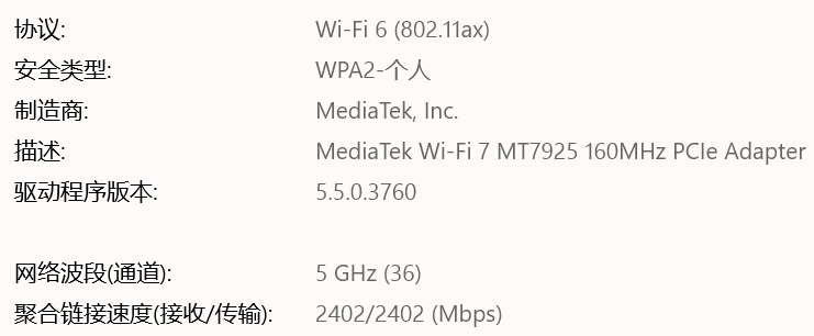 请问各位大佬为什么我的MT7925无线网卡速率这么低吗? |